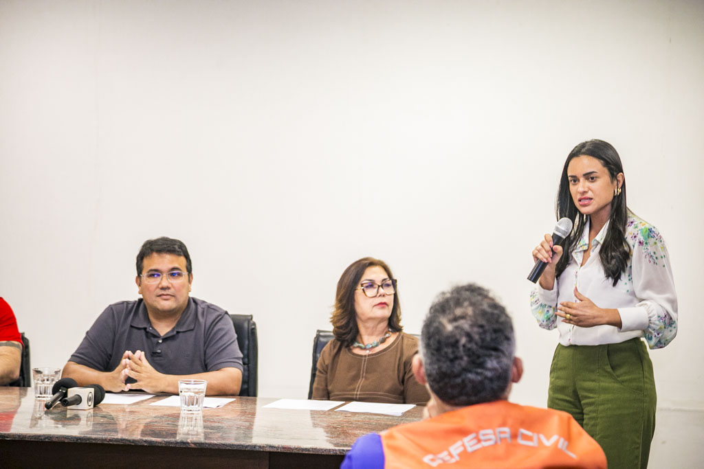 Sobre a retirada de entulhos, a titular da Infraestrutura informou que o volume coletado quadruplicou após a chuva, chegando a cerca de 80 toneladas por dia, o que provocou atraso no cronograma regular. A Prefeitura reforçou o pedido de colaboração da população para evitar o descarte irregular de resíduos, fator que contribui para o entupimento de galerias.